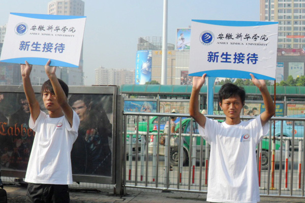 (在火车站门口迎新的志愿者)