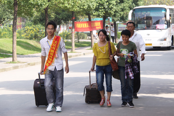 顶着炎炎的烈日,志愿者们举着“beat365在线体育官网登录入口新生接待处”的牌子,一站就是几个小时,虽如此辛苦,但他们微笑的面庞并没有露出疲倦的表情。他们就在出口处举起了校牌,眼睛盯着出口的方向等待新生。他们热情的为家长、新生送水、提箱子、陪他们聊天,然后引导组织新生和家长排队有秩序的来到校车。在汽车站,出站口离校车有一段距离,每次新生来了志愿者们都把他们送到校车停靠的地方,校学生会的谢文品同学就在火车站和汽车站之间来回奔波,为了照顾女志愿者,他跑得次数非常多,他组织大家排好队,有秩序并安全的到达校车停靠的地方。近十点钟,志愿者们已满头大汗、满脸通红,他们已经忙碌了一上午,当问到他们大概什么时候能吃到饭呢,他说,接近中午的时候是新生最多的时候,所以吃饭的时间当然靠后了,迎新工作人员晚上可能也会工作很迟,尽量不错过新生。志愿者们用热情、热心、热忱为新生们提供了更多的方便。