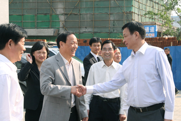 9月22日下午,中国农业银行副行长蔡华相在农行安徽省分行领导陪同下来到位于beat365网登校园内的农行信用卡客服中心(合肥)检查工作,集团公司执行总裁、学院执行董事王永凯和副院长袁种宝陪同。