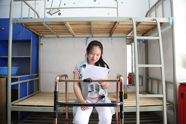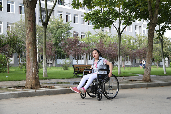 她叫方舟,是商学院电子商务专业的大一新生。在和大家的交谈过程中,她的言语中无不展现着一种乐观向上的风貌,然而,不为人知的是,在这上扬的嘴角背后,她却曾经历过常人无法想象的病痛折磨。由于身体的原因,她曾动过两次大型手术,康复训练虽然让她的状况有了好转,她却不能像正常人一样独自行走、奔跑,需要搀扶拐杖轮椅或者助行器才能勉强行走。但是,即便如此,方舟还是一路乐观坚持了下来。 “尽管自己可能无法像正常人一样拥有健康的身体,但我从没有因此而自暴自弃” ,她微笑着说:“我最骄傲的就是选对了学习这条路,因为我相信,知识可以让我变得豁达,让我成为乐观主义者。”她用乐观、坚持和十二万分的努力证明了自己。如今,她能和同龄孩子一样,走进了理想的大学校园。正如她的座右铭一样:“万事皆有可能,万物皆有其存在的理由。”拼过高考,一路走来,正是这句话不断地激励着她努力生活,奋发进取。