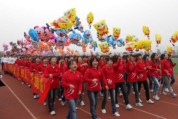 教职工代表队无疑是运动会上一支吸引全院师生的独特队伍,虽然他们平时忙于工作,严肃认真,但是在运动会上,他们将会和学生运动员一样活力四射、全力以赴。“龙腾虎跃,教工赛场尽显英姿;潜心育人,为十二五策智献力”的条幅表达了老师们的决心。(文/学生记者:张洁琼、陈爱丽,图/陆如海)