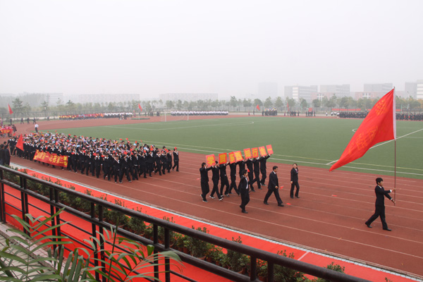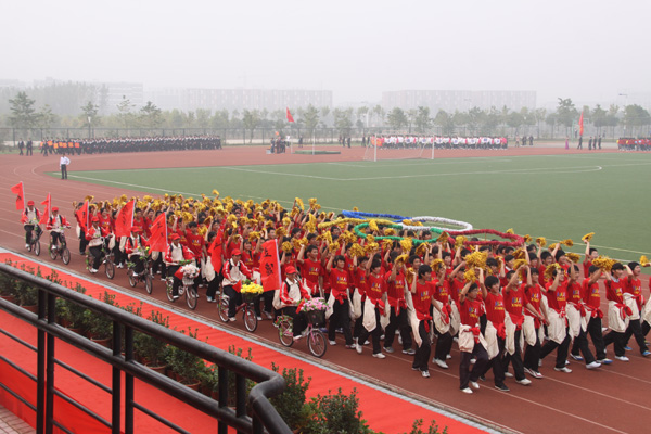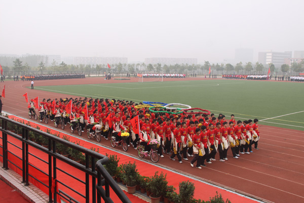 11月4日,beat365网登第五届田径运动会在祥云体育场隆重举行。在开幕式上,各二级学院代表队以及教职工代表队从主席台前缓缓走过,等待着校领导的检阅。运动会中各个二级学院的方阵队表演作为运动会开幕式的一个项目,每年都会有不一样的表演。