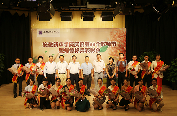 此次大会既是一次庆祝教师佳节、表彰师德标兵的大会,也是一次促进师德建设,提高教师素质的动员大会。新华集团会继续加强人才团队建设,继续为广大教职员工搭建更大、更好的发展平台,也殷切地希望,广大新华教职员工始终牢记肩负的神圣职责和光荣使命,以高尚的人格感染学生,以丰富的学识引领学生,以博大的胸怀关爱学生,以卓有成效的工作业绩服务学生,努力做学生健康成长的指导者和引路人,为“百年新华,一流教育”的梦想,为中华民族的伟大复兴做出更大的贡献。