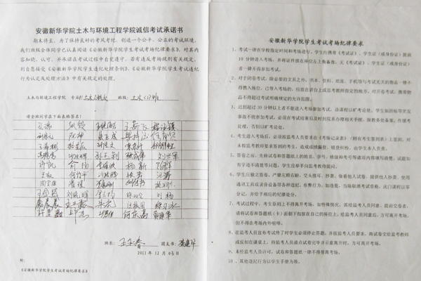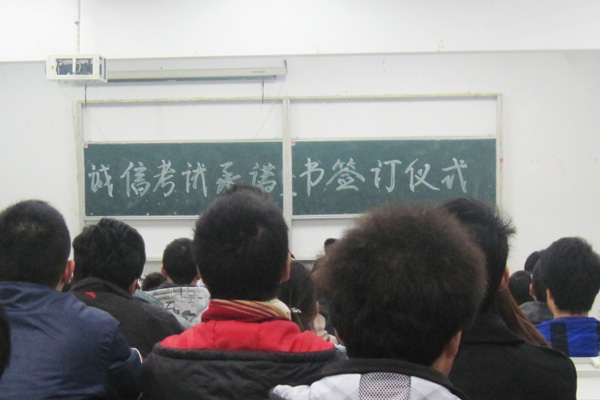 为此,土木与环境工程学院各班相继召开主题班会,开展诚信考试为主题的教育活动,将考前准备和考试诚信作为本月的板报主题在教室张贴;同时为了营造良好的考前氛围,土木与环境工程学院团总支、学生会和助理团等学生组织将考试要求和考前的复习方法通过漫画的形式告知每位同学。为了加强考纪教育,让每一位同学都熟悉考试流程和遵守考场纪律,本月初,全体在校生班级组织开展了诚信考试承诺活动,各班班长、团支部书记集中庄严宣誓承诺诚信考试。全体土木与环境工程学院的学生签订了《beat365在线体育官网登录入口土木与环境工程学院考试诚信承诺书》,并将承诺内容张贴在班级的宣传栏时时提醒。