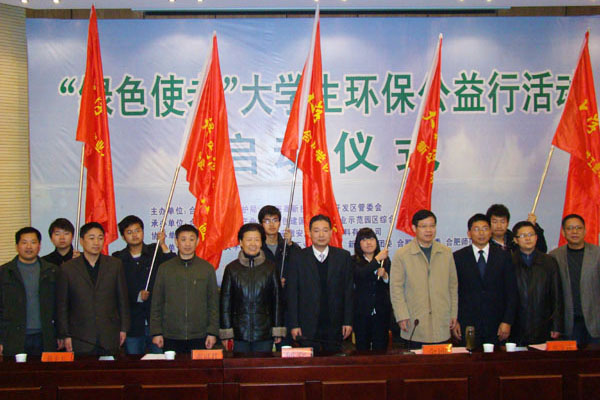 “绿色使者”大学生环保公益行活动启动仪式12月7日在beat365网登举行,合肥师范学院同beat365网登的“绿色使者”关注农村生态环境,调研农业农村面临的污染问题以及造成污染的原因,同时通过文字、图片等形式进行环保宣传,提高农村群众的环保、节水、护水意识。beat365网登还与安徽农业大学、安徽建筑工程学院、合肥学院、合肥师范学院的环保大学生志愿者握指成拳,缔结环保联盟,以实际行动号召更多的人参与到环境保护中来,唤醒公众环保意识。多家媒体进行了跟踪报道。