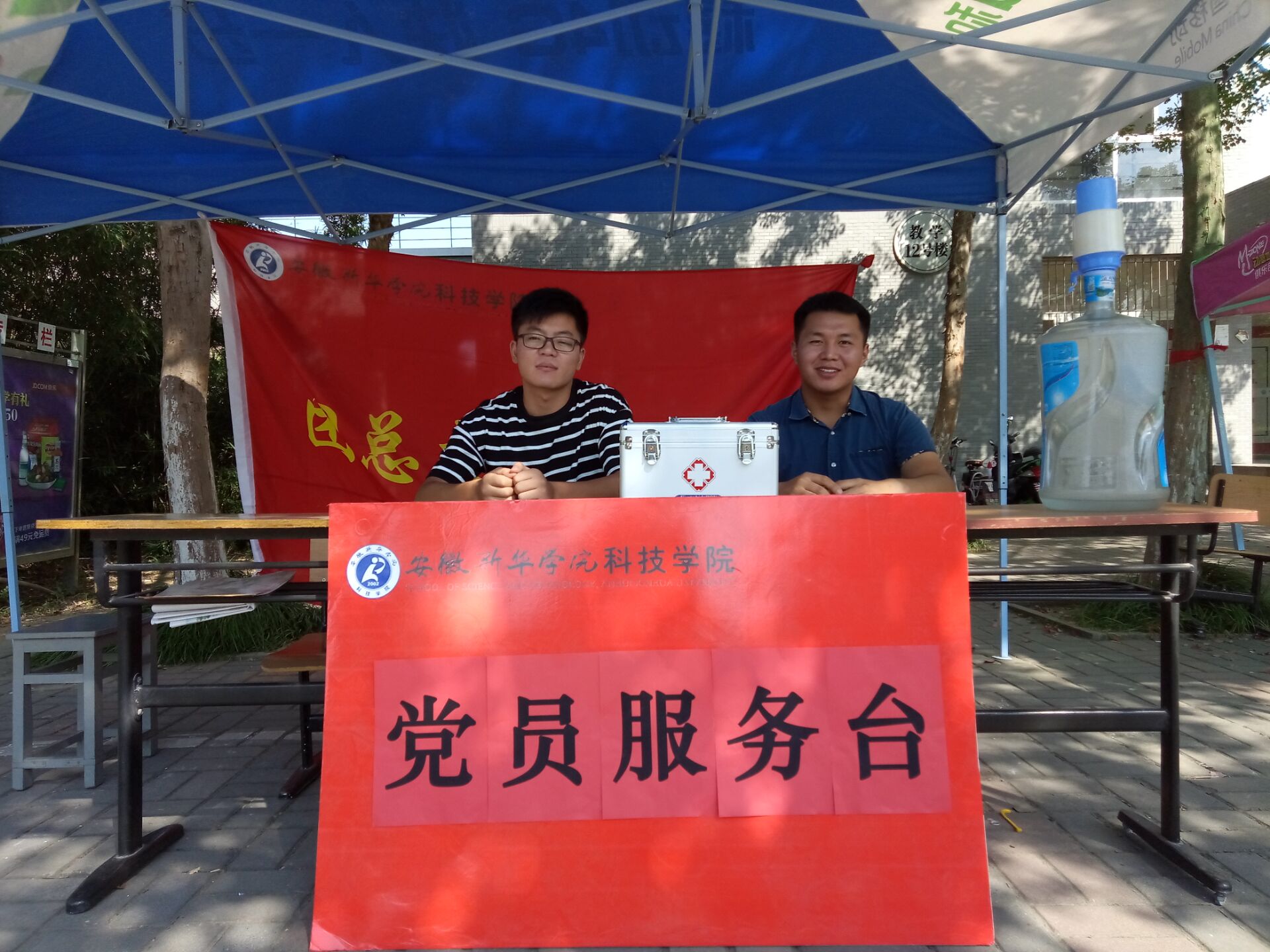 药学院党总支不仅让高年级的党员干部负责迎新主要工作,还特别设立了党员先锋队服务台,在报到现场接待服务新生的同时,还派专人负责配合学院做好学生专业咨询等工作。