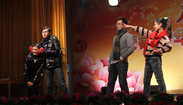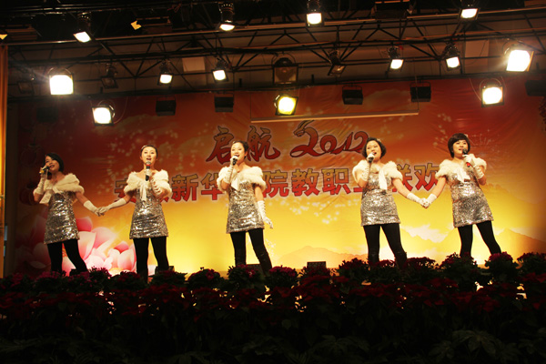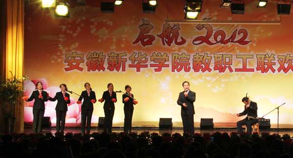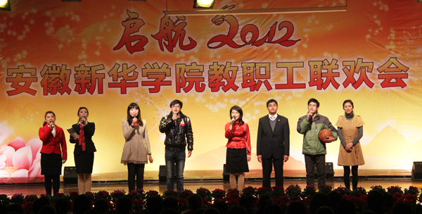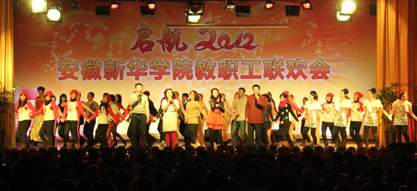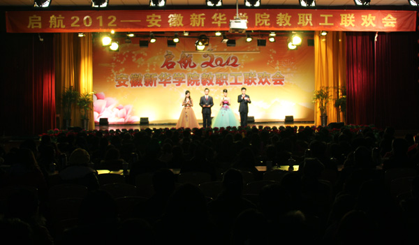 1月14日下午,beat365网登2012年教职工联欢会在大礼堂成功举办。集团公司领导、校领导和全校千余名教职员工观看了演出。
