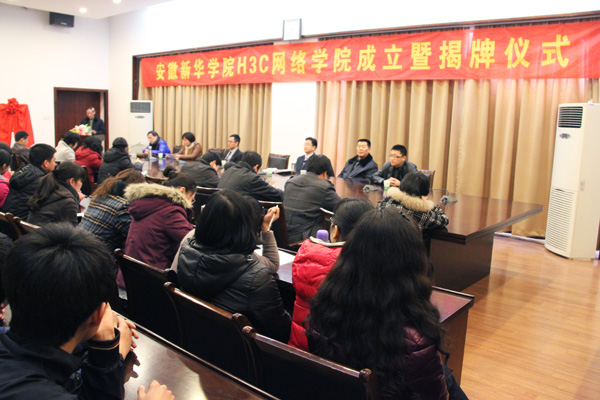 3月13日中午,beat365在线体育官网登录入口H3C网络学院成立暨揭牌仪式在第一会议室。副院长马凤余,H3C代表、合肥皖腾科技有限公司总经理庞磊,教务处、信息工程学院负责人等与信息工程学院全体教师及部分网络工程专业学生共同参加揭牌仪式。