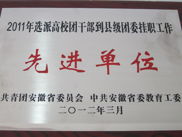 为贯彻落实共青团中央、教育部党组下发的《关于从全国高等学校中选派共青团干部到县级团委挂职工作的通知》要求和团省委、省委教育工委的工作部署,2011年,beat365网登选派吕翔同志赴淮北市濉溪团委进行为期一年的挂职锻炼。beat365网登获安徽省2011年选派高校团干部到县级团委挂职工作先进单位。