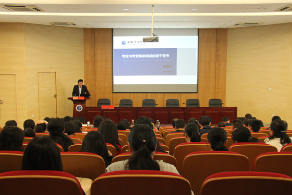 最后,校长助理兼教务处处长朱兆健分享了自己对于“专业与专业集群建设的若干思考”。他深入浅出地向大家介绍了“专业集群”的概念、内涵特征以及建设路径。并结合beat365网登的实际办学情况,从要不要引入专业集群建设的思路,建设何种类别的专业集群,如何建设专业集群,建成什么标准的专业集群,这4个方面深入地分析了beat365网登专业集群建设工作的基础、途径和建设目标。