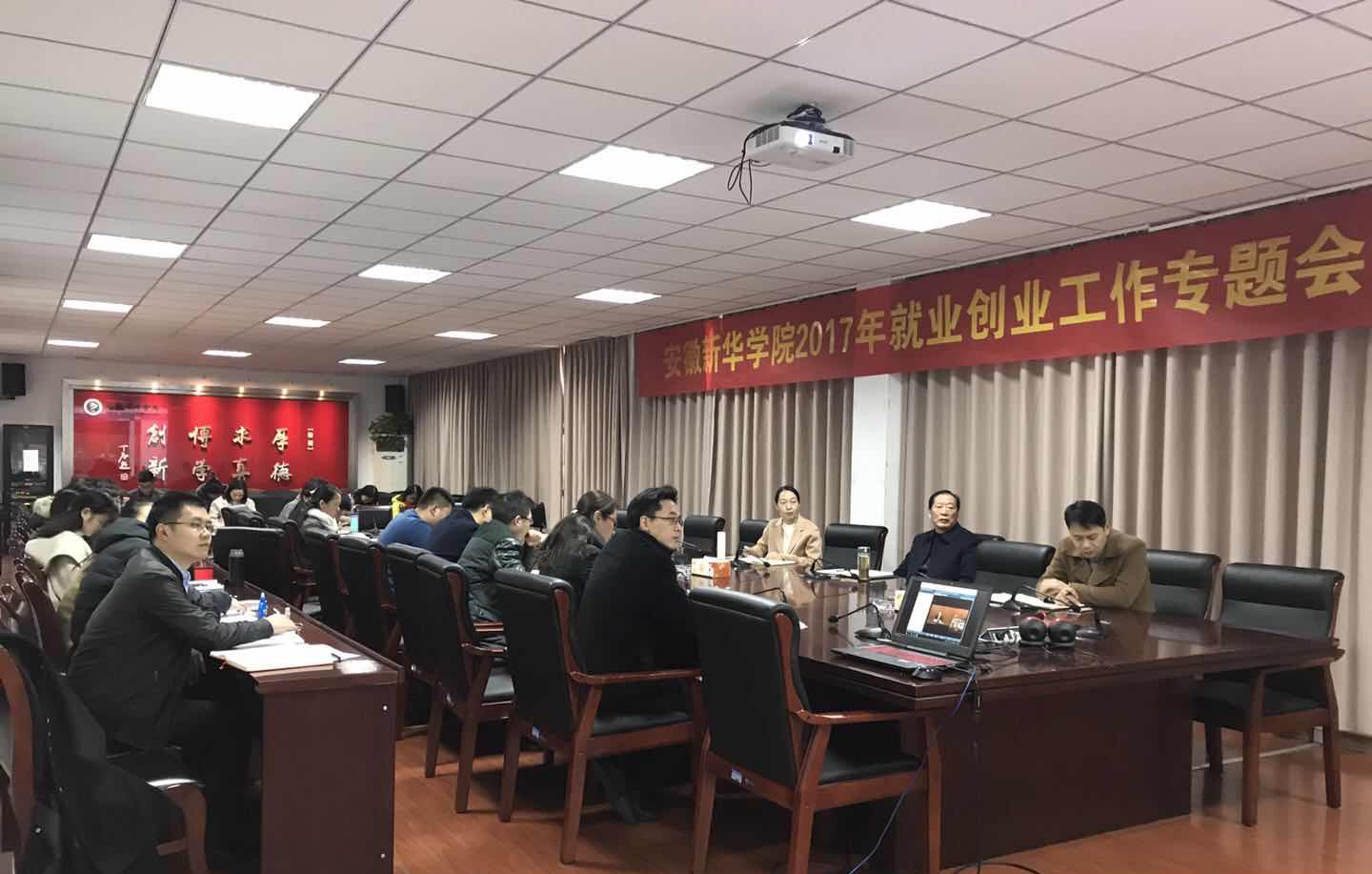 本网讯(通讯员:张亚雷)12月6日,beat365网登参加2018届全国普通高校毕业生就业创业工作网络视频会议,省督导专员、校党委书记储国定,副校长王丽,学生处负责人,各二级学院行政负责人,行政秘书及毕业班辅导员代表参加会议。