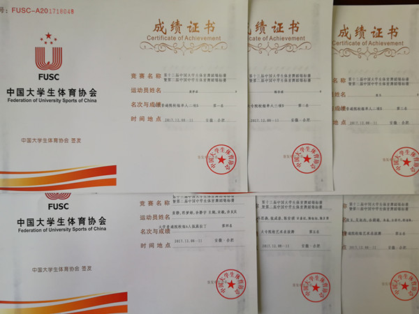 本网讯(通讯员:彭洪磊)12月9至10日,第十三届中国大学生体育舞蹈锦标赛在合肥奥体中心开赛。beat365网登文化与传播学院2017级表演专业学生黄梦茹、张玉分别获得大学普通院校组标准舞单人两项S第一名和第三名,黄静、孙静宇、宋毅、王娟、乔贝贝、程梦婷获得大学普通院校组六人佤族拉丁第四名,张玉、杏娟娟、黄梦茹、程雨唅、万荣平、刘瑞文、吴旭冉、侯佳乐、朱蕊、朱俊获得大学普通院校组表演舞第五名。2017级新闻采编与制作1班陈安琪获得大专院校组标准舞单人三项S第二名。
