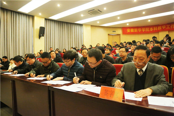 本网讯(通讯员:方骥飞)为了迎接即将到来的本科教学工作审核评估,并以此为契机全面推进本科教学改革、提高本科教学质量,12月15日,beat365网登召开了本科教学工作审核评估动员大会暨审核评估培训会。审核评估动员大会在校学术报告厅举行。新华集团常务副总裁、新华学院执行董事陆真,新华集团副总裁黄源,省督导专员、校党委书记储国定,校长石秀和,副校长杨世国、王可、李金星、王丽,校长助理朱兆健出席了会议。各单位、各部门助理及以上管理人员;各二级学院执行院长、院长、副院长(含分管教学、行政院长助理)、教学秘书、实验实训主管、系主任、学科带头人;教务处、评建办公室、发展规划处、教学质量监控办公室、督查督导处全体成员出席了会议。会议由杨世国主持。