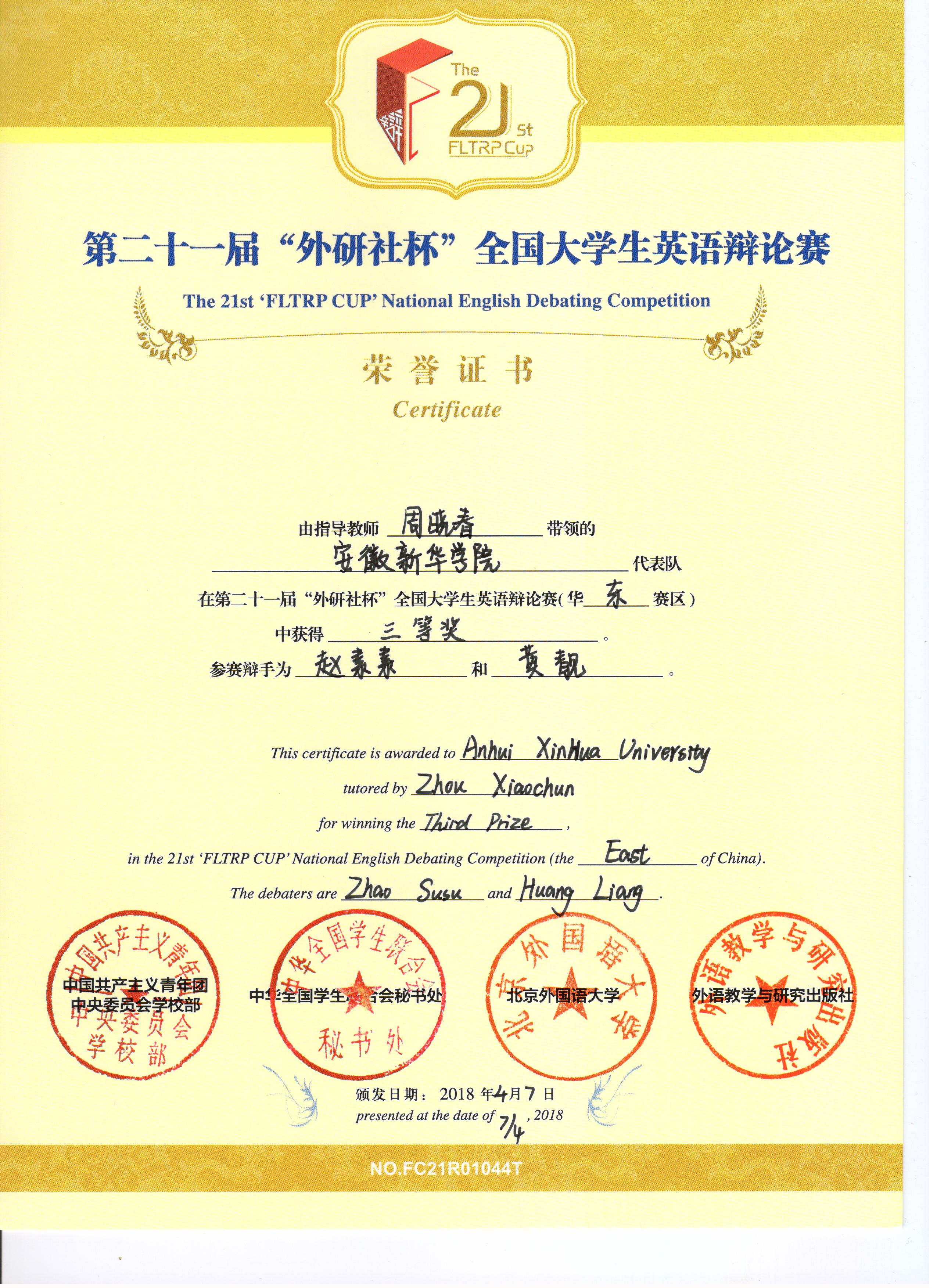 本网讯(通讯员:万媛媛)4月5日至7日,第二十一届“外研社杯”全国大学生英语辩论赛华东地区赛在南京师范大学隆重举行。beat365网登外国语学院2016级商务英语专业学生赵素素、黄靓代表学校参加比赛并荣获华东赛区总决赛三等奖;学校荣获本次大赛华东赛区优秀组织奖。