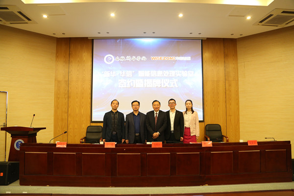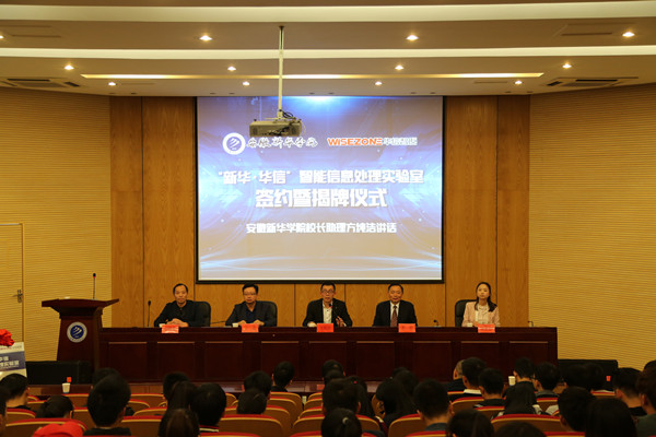 本网讯(通讯员:刘毅强)4月13日,电子通信工程学院与安徽华信智原教育科技有限公司校企共建“智能信息处理实验室”签约揭牌仪式在学术报告厅举行。校长助理方纯洁、电子通信工程学院执行院长计勇、副院长舒敬荣、安徽华信智原教育科技有限公司总经理李勇、运营经理宋家言以及部分师生代表参加了仪式。