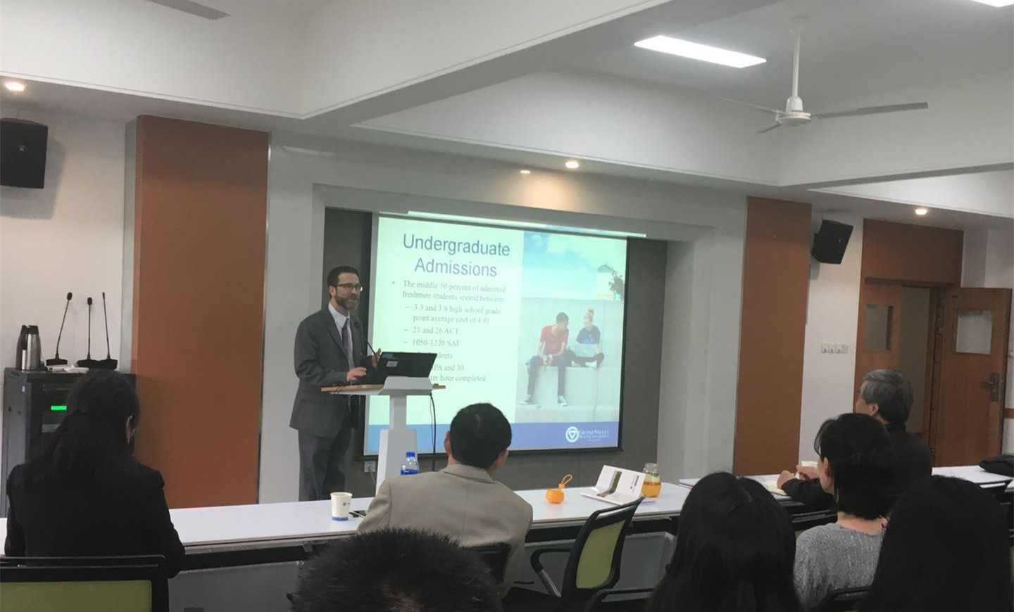 本网讯(通讯员:李由)为加强国际学术交流与合作,营造国际化氛围,5月7日,beat365网登邀请密歇根大峡谷州立大学Sean Lancaster教授一行来校进行学术研讨与交流。国际教育学院院长范东生、外国语学院院长张杰、副院长王志宏、中外籍教师及部分学生代表等参加了学术讲座,讲座由范东生主持。