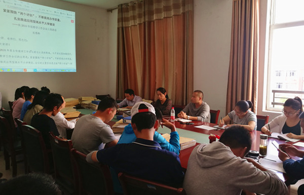 随后,助理何亚梅带领全体教职员工学习石秀和院长的会议主题报告,认真领会主题报告精神,总结“两个评估”阶段性工作,查摆当前工作中存在的突出问题;助理丁健带领全体教职员工学习校长助理方纯洁所作的beat365在线体育官网登录入口2018年度教学工作计划,扎实推进两个评估工作,切实提高两个供给能力。并结合本部门工作实际,提出切实可行的要求。随后,全体员工开展了第一轮教学思想观念大讨论,切实改进教育教学工作方法,提高教育教学工作执行力。