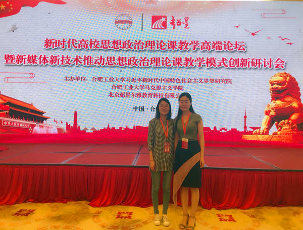 本网讯(通讯员:彭丹)6月2日, 新时代高校思想政治理论课教学高端论坛暨新媒体新技术推动思想政治理论课教学模式创新研讨会在安徽合肥举行,本次会议由合肥工业大学马克思主义学院主办,北京超星尔雅教育科技有限公司承办。会议邀请了全国高校知名专家与各高校思想政治教育及相关专业教师围绕议题展开主题报告和研讨,思政部兼职教师刘慧、彭丹、参加了此次会议。