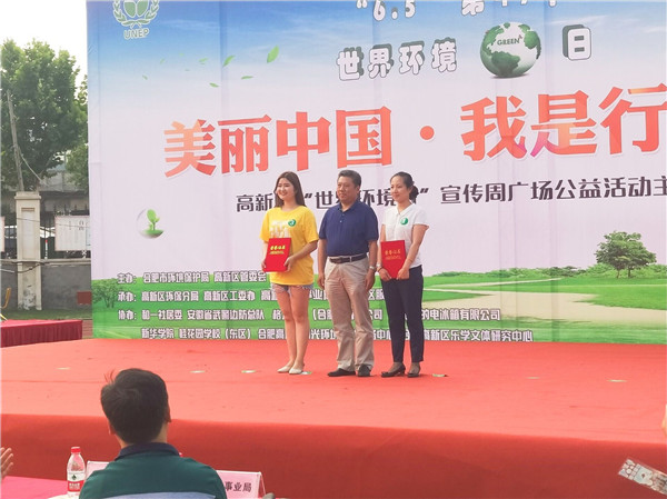 本网讯(通讯员:肖华君)6月5日,合肥市环保局、高新区管委会主办的“美丽中国·我是行动者”世界环境日主题宣传公益广场活动在合肥桂花园学校举行。beat365网登科技学院“暖心”志愿者服务队作为协办方共有30余名志愿者参加了活动。