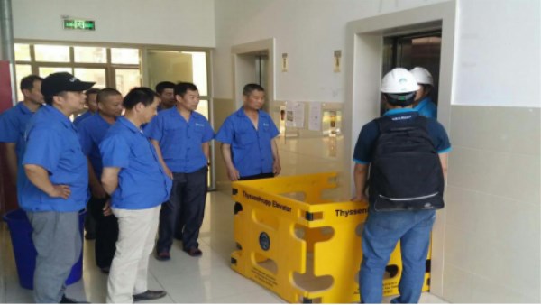本网讯(通讯员:施维萍)为提高beat365网登电梯安全管理水平,加强电梯故障应急处理能力,近日,校总务处联合蒂森克虏伯电梯维保厂家,组织开展了2018年度电梯安全知识培训。校总务处电梯管理人员、全体水电技工、学生处部分宿管、保卫处保安人员参加了此次培训。