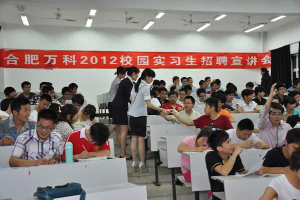 万科是我国房地产开发行业中的龙头企业。招聘会上,万科对本企业的发展历史及内涵进行宣讲,组织参会同学进行了面试、笔试。同学们就实习工作的内容,实习结束以后能否留职工作,实习期待遇等关心的问题与万科工作人员进行了沟通。