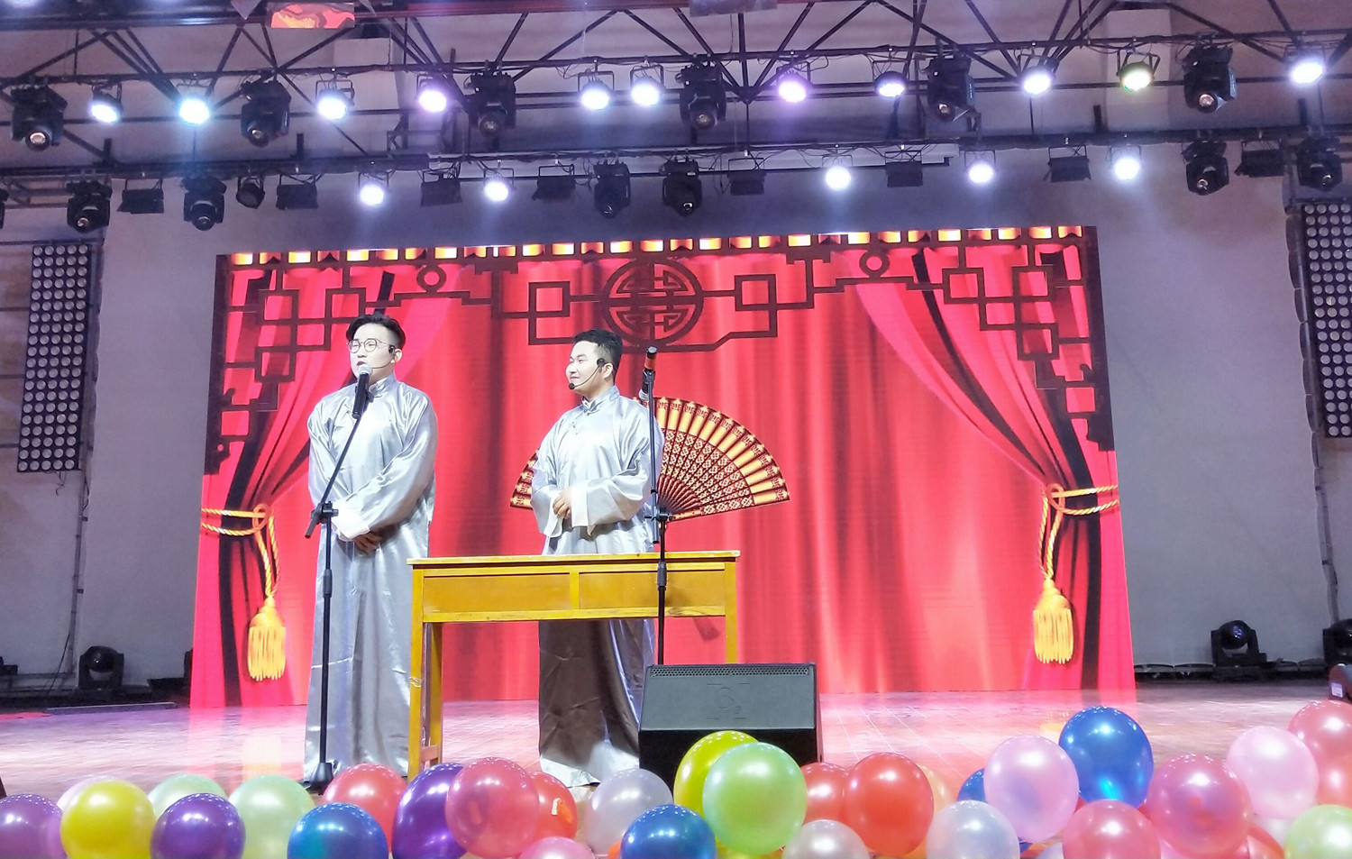 随后进行e文化节晚会表演。动感十足的街舞散发着青春的活力;团总支带来的朗诵《少年中国说》,点燃了现场学生的爱国雄心;艺术团带来的异域风情的舞蹈《旋转婆罗多》,让人眼前一亮;计算机科学三、四班学生带来的快板《华园颂》,轻快的节奏,朗朗上口的唱词歌颂华园;院务助理团的舞蹈《fire》,火热激情的舞蹈让现场观众热血沸腾;学生会文艺部的小品《酒楼》,幽默风趣的语言,栩栩如生的动作让学生们沉浸在故事的情节里;艺术团王哲同学带来的歌曲《丑八怪》,动人的声线,抑扬顿挫的节奏,赢得了现场听众的阵阵掌声;学生会的相声表演《好好说话》,幽默风趣的语言直接点燃了现场的气氛,让现场听众如沐春风;计算机科学一班带来的吉他弹唱《春风十里》,清新的嗓音让人沉醉;华园信工学子们的师生情缘十分浓厚,辅导员教师们精心准备的节目歌舞表演《青苹果乐园》,将晚会现场的气氛推至顶点。