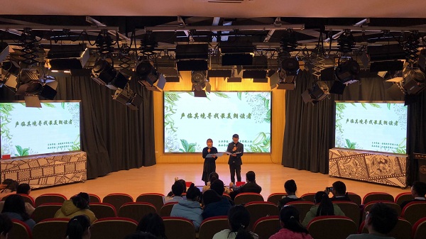 活动伊始,主持人介绍比赛规则、评分标准。姜玮和孙晗带来的作品《致橡树》表达出了优雅从容、浪漫深沉的情感;高扬带来的《江南行》则更添了一份侠骨柔情;王群芳深情演绎的《永远的第十一位老师》,聚焦留守儿童教育和乡村教师,全场观众为之动容;苏荣萍师生带来的《我们的教育理想》充分表达了作为教师的责任与担当和对教师这份职业的热爱,师生搭档的形式也表现出了学生对老师的感恩之情;赵群带来《我骄傲,我是一名辅导员》更是充分体现了辅导员工作的平凡与不平凡。