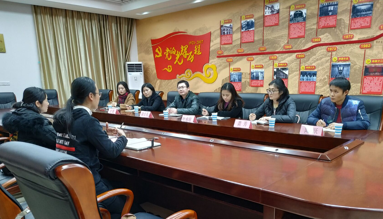 本网讯(通讯员:叶承琼)12月25日下午,信息工程学院党总支一行6人来到共驻共建单位高新区油墩社区党总支,就标准化建设工作交流、校区联合志愿者服务、等工作进行座谈。社区党总支第二支部书记李林,总支宣传委员李霞两位同志参与了座谈会。