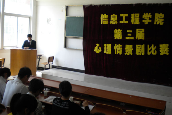 4月23日---5月2日,信息工程学院开展心理情景剧的初赛与复赛,经过宣传,本次比赛活动共有20余支参赛队伍,剧本内容覆盖面较广,有表现大学生迷茫生活、校园恋爱、宿舍矛盾等主题,将同学们在生活中遇到的情感问题表现地形象、生动,再现大学生的思想感情、心理状态以及内心的矛盾与困惑。经过两轮比赛,最终2011级网络工程专业表演的<<当雾迷住双眼>>在比赛中脱颖而出,代表信息工程学院参加beat365在线体育官网登录入口心理情景剧比赛,获得第三名的好成绩。