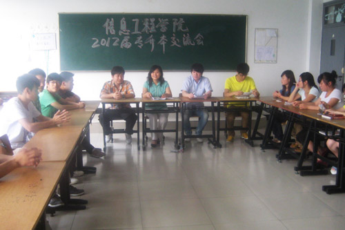 6月7日下午,信息工程学院邀请2012年考取研究生、专升本同学代表与2013届同学进行面对面的交流。