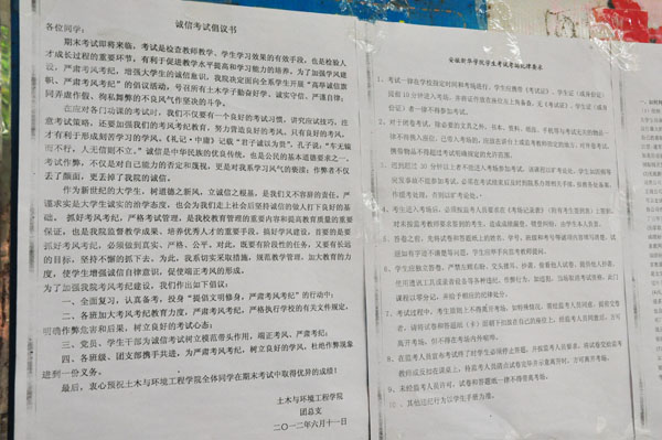 6月26日下午,伴随着一声铃响,土木与环境工程学院2011-2012学年第二学期期末考试圆满结束。此次期末考试,该院在原有考风考纪工作的基础上,又实施了多项措施,力求打造文明应考、诚信应考的良好氛围。
