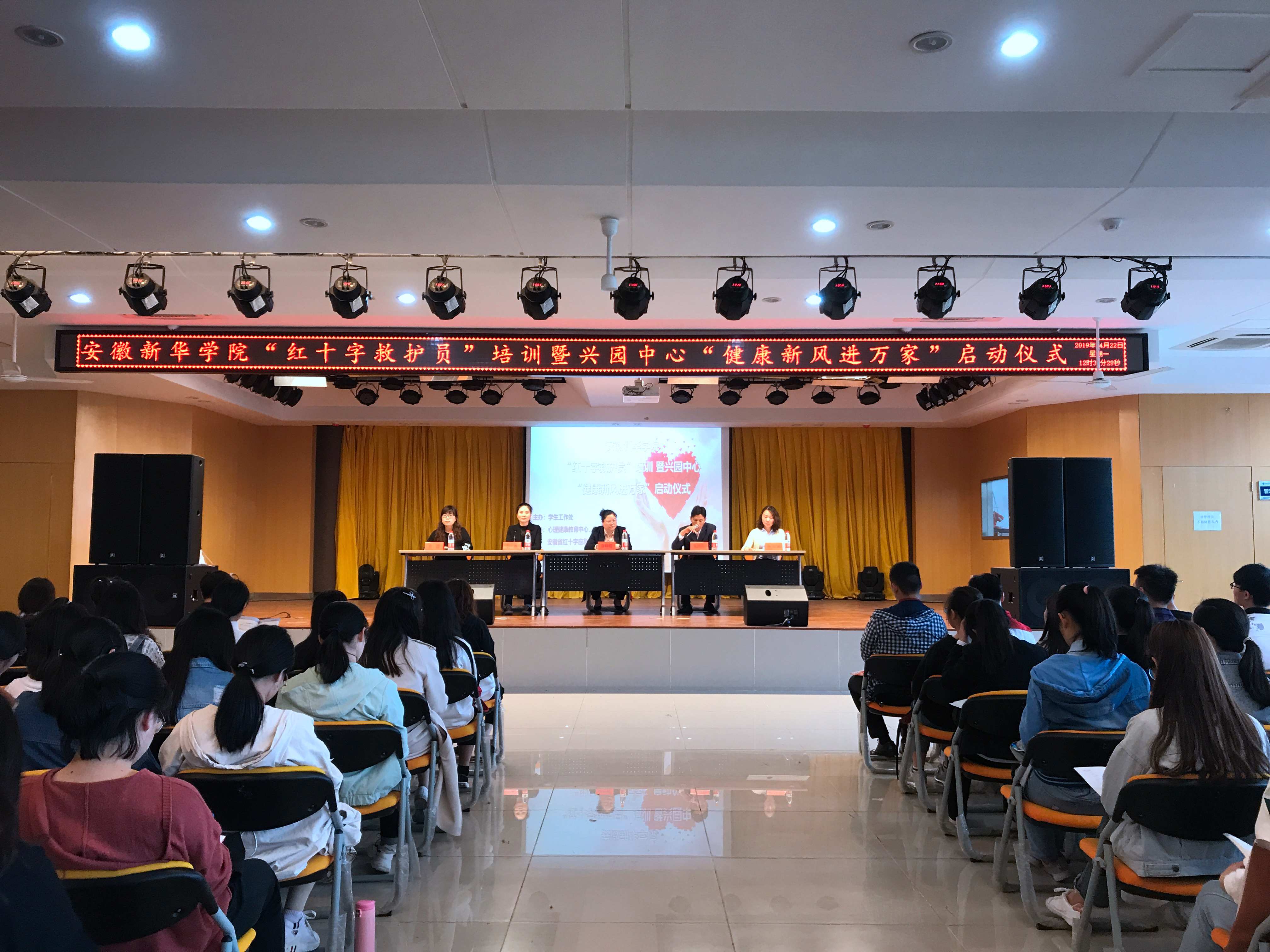 安徽省红十字应急救护培训指导中心秘书长、教研部主任章峥嵘、高新区兴园中心副主任朱跃年、兴园中心计生科科长李琳、高新区兴园中心金桂社区党支部委员、副主任孙亚秋、beat365在线体育官网登录入口学生处处长助理凌晨及安徽省红十字应急救护培训指导中心讲师团讲师们出席了“红十字救护员”培训开幕式暨兴园中心“健康新风进万家”启动仪式。本次培训由学生工作处主办,心理健康教育中心、药学院、省红十字应急救护培训指导中心承办,兴园中心金桂社居委、大学生心理协会协办。