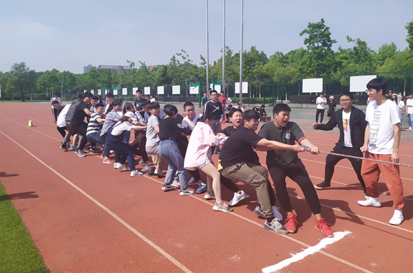 本次运动会项目有集体拔河、跳大绳、瞎子背瘸子、组合运动,2018级学生积极参与。烈日炎炎,操场上洋溢着青春气息,各参赛专业早早地来到操场进行热身,积极备战。比赛在响亮的哨声中开始,拔河、跳绳等集体活动,有效的促进团体精神发展,在一声声呐喊助威中,各队都展现着自己独特的魅力。瞎子背瘸子项目,非常考验俩人默契和男生的方向感,要对女生的指示深信不误,还要与搭档相互配合。最后一项组合比赛,更是将比赛推进到白热化状态,运球、踩石过河、投球进篮、两人三足的组合项目,不仅考验队员的个人素质能力,也考验团队的团结协作能力。秉承着“友谊第一,比赛第二”的原则,参赛现场的学生们互相鼓励,比赛过程中也相互分享各自的获胜经验。