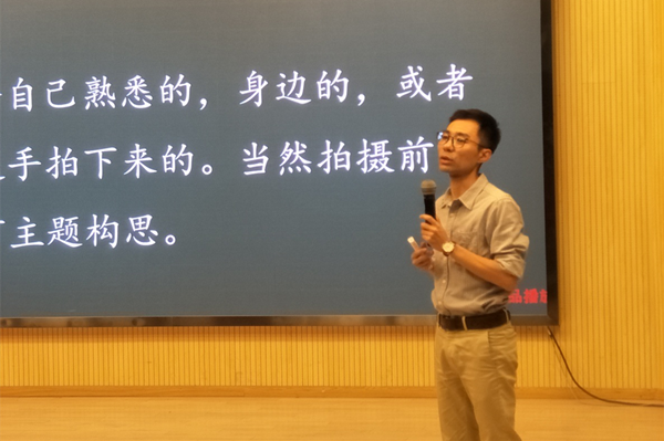 陈少雷从微视频定义着手,首先解读了微视频的含义。针对微视频短、快、精的特点播放相关影片,引出好的创意及主题表现是一部优秀作品关键点,鼓励同学们多动手拍摄,用心体会生活,感悟生活,从中获得创作构思与灵感。随后,陈少雷详细讲述了本次比赛的相关规则,并与现场学生积极互动,针对学生提出的疑问,一一做出解答。