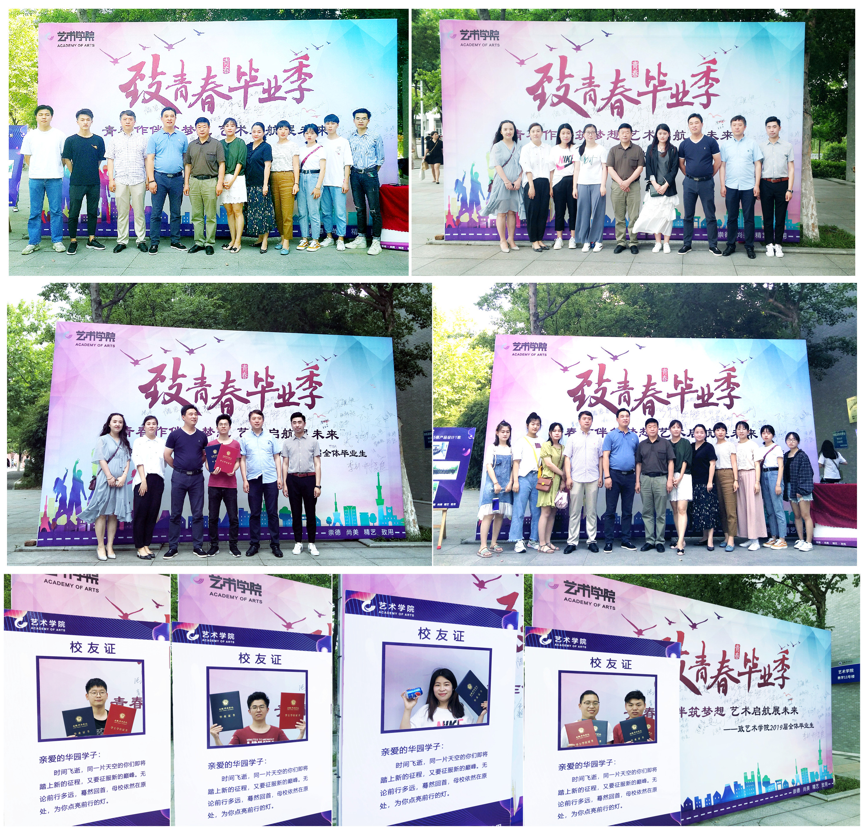 为营造温馨、和谐、感恩母校的良好氛围,艺术学院毕业生党员、考研、专升本,、创业等优秀学子与学院领导拍照留念,并为毕业生们拍摄校友证的纪念照片,情系校园,温暖定格这美好的一刻。