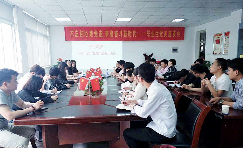 6月6日,艺术学院开展了以“不忘初心跟党走,青春奋斗勇担当”为主题的毕业生党员座谈会。艺术学院学生党支部书记张小菊、王晓俊,毕业班辅导员高扬及2019届毕业生党员代表参会。座谈会上,支部书记带领毕业生党员们重温入党誓词,毕业生党员们都对即将要离开学校谈了自己的感想。王晓俊希望毕业生党员同志在以后的道路中都能有所作为,不忘初心,牢记使命,在工作中顺顺利利,考研同学能够学业有成。