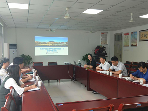 汪俊东首先对宿迁学院一行的到来表示热烈的欢迎,简单介绍了财会与金融学院专业的发展历程及人才培养等情况。蔡冬梅重点就互联网金融专业的建设规划、师资队伍建设、课程建设及实践教学等方面进行了详细的介绍,强调该专业建设过程中需要突出行业背景,有目的培养符合行业发展需求的互联网金融人才。随后,张衡具体介绍了该专业的申报情况,以及专业在建设中的整体思路和特色亮点。