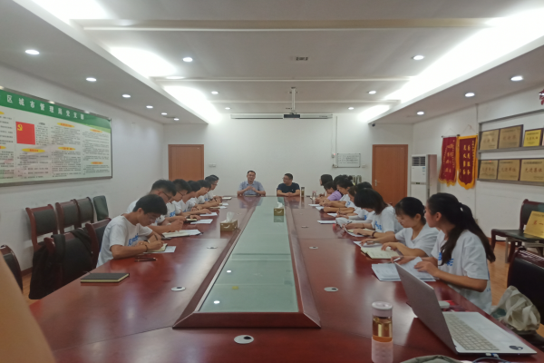实践队第一站到达高新区城市管理局,受到管理局处长方小祖的热情接待。接下来,队员们针对高新区垃圾基础状况、作业情况及垃圾处理情况等具体数据进行调研。在方处长的介绍下,队员们了解到市政府对环保方面的财政支出占比很大,对垃圾分类工作高度重视,目前高新区正在进行156户垃圾分类试点,后期根据实际情况再进行大面积的推广。方处长详细讲解合肥市垃圾分类的处理方法,说到垃圾分类是一项系统工作,需要长期管理,真正做到生活垃圾“减量化、资源化、无害化”,还需要政府和公民的共同努力。