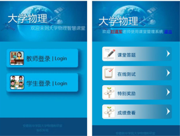 在学校继续深化课程改革的倡导下,张季教授带领物理教研室全体老师于2018年7月至2019年2月期间,编写制作了一个大学物理辅助教学平台,并在2018-2019学年第二学期进行了实际课堂教学辅助测试,从测试结果来看,平台的利用可以有效的对学生学习过程加以监控,效果显著。