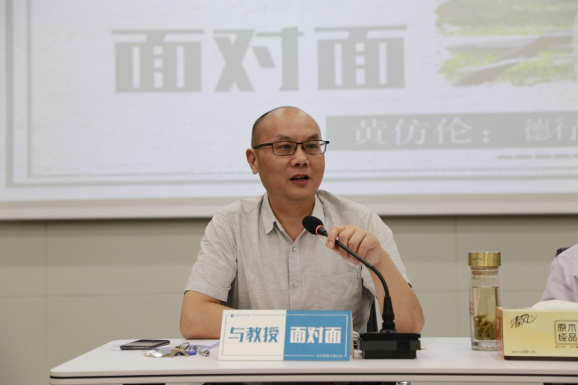 黄仿伦教授给青年教师们做了“德行兼备,做青年教师的良师益友”的主题分享。首先,黄教授结合自身经历说起了对教育的坚持,他讲述了自己人生的几个重要的转折点和人生选择,以己为例劝诫青年教师职业路上不要走弯路,一旦选择教师这条路,就要做长远的打算。以此引导青年教师更好地进行职业生涯规划。其次,他指出,青年教师首先要站稳讲台,要专心致志研究教学,要有职业精神,要做好每一节课的设计,要针对不同的学生采用不同的授课方式。最后,他就如何做好科研给青年教师做了指导。针对科研文章难发表、项目难申请等问题都提出了具体的建议。黄教授的分享具体、生动,即有理论高度,也有实际指导意义。
