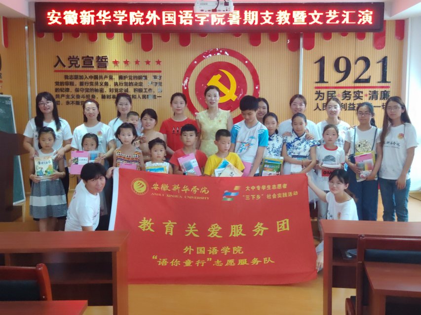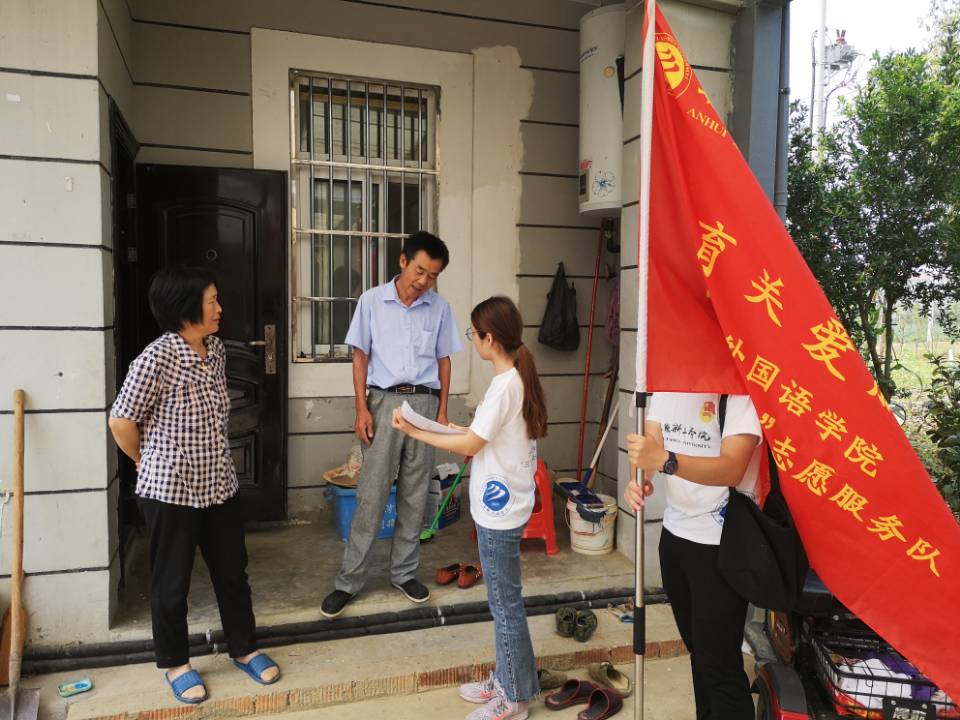 本网讯(通讯员:汪凌汇)为贯彻党的精神,落实团中央关于大学生暑期“三下乡”活动的通知,围绕beat365网登“厚德、求真、博学、创新”的校训精神,践行科学发展观理念,促进大学生接触社会、了解国情,培养青年大学生的历史使命感和社会责任感。6月25日,外国语学院 “语你童行”志愿服务队走进巢湖市中庙街道河西村,开展暑期“三下乡”活动。外国语学院团总支书记陈丽、副书记汪凌汇及十名学生志愿者参加了活动。