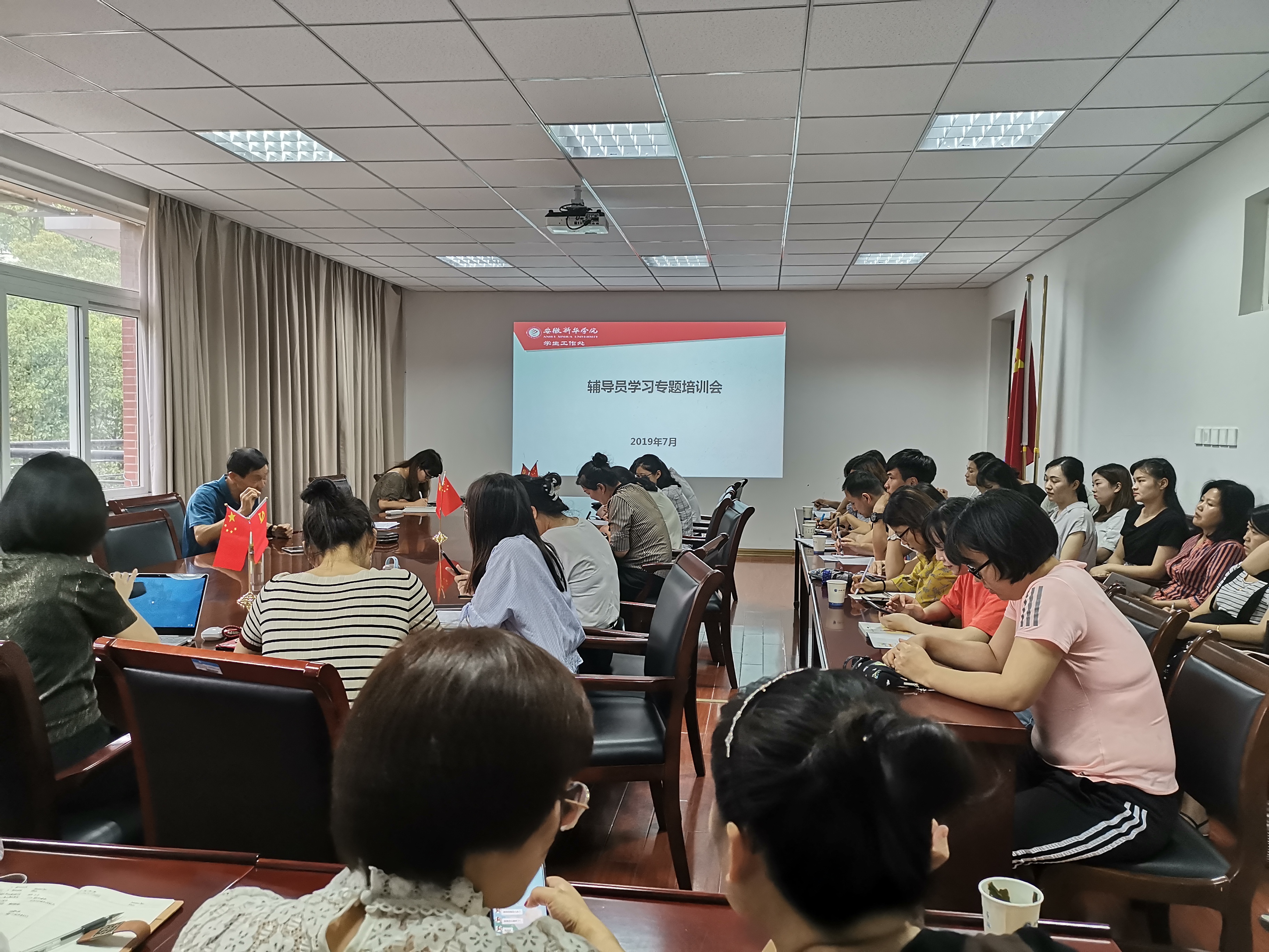 本网讯(通讯员:王强亚)为进一步加强学工队伍建设,提高beat365网登辅导员的理论水平、专业素养和学工研究能力,打造学习型组织。学生处辅导员发展研究中心于7月9日下午在第三会议室召开辅导员学习能力提升专题培训会(第二期)。本次培训由辅导员发展研究中心主任朱平主讲,各二级学院辅导员代表及学生处相关人员参加。
