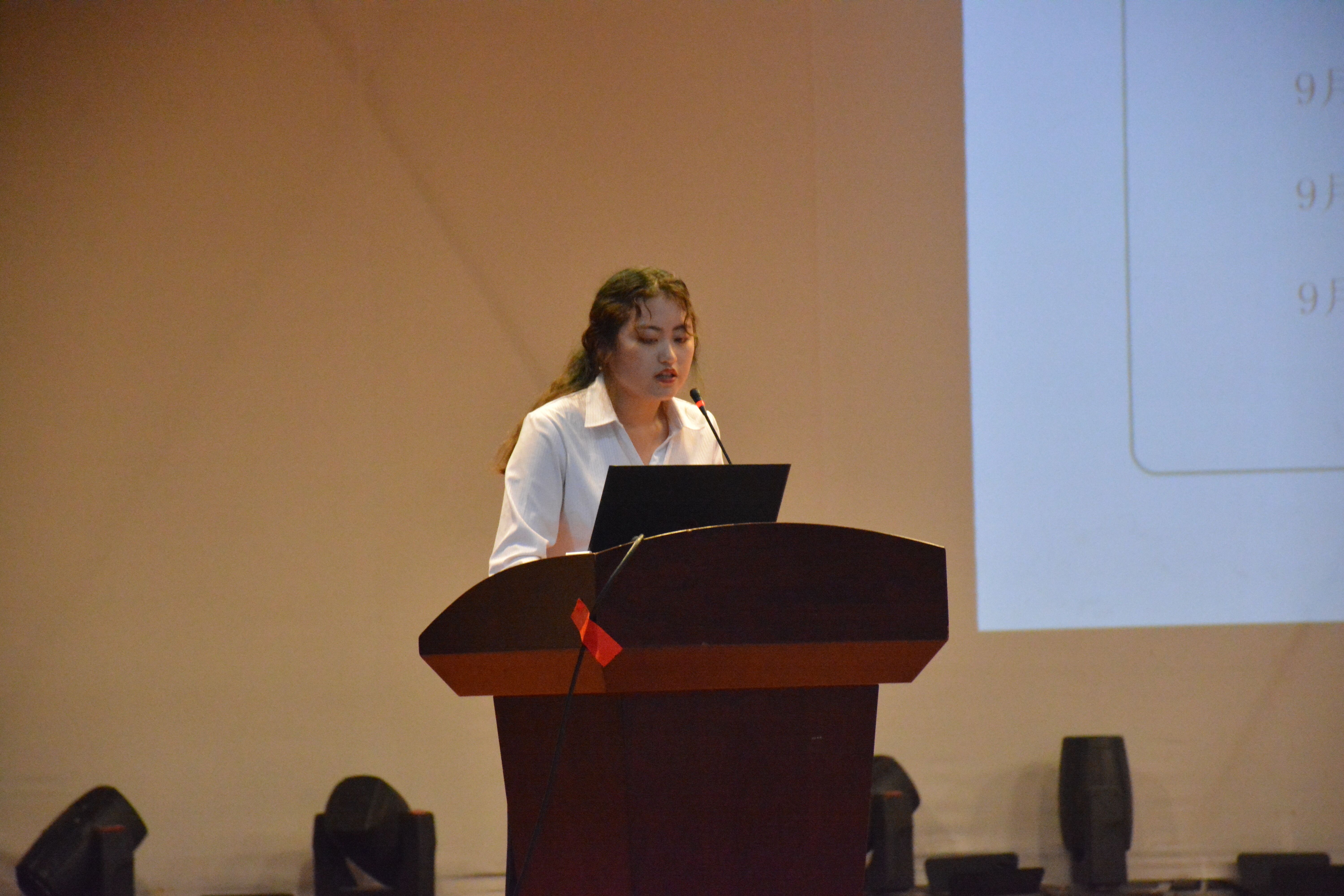 大会在嘹亮的团歌声中拉开帷幕。首先,迎新志愿者代表廖闽带着志愿者们回顾了2018年志愿服务工作的风采和成绩,并向志愿者们介绍了2019年迎新工作的具体流程以及注意事项。接着,第十三届学生社团联合会主席何璐向志愿者们分享了两年的迎新志愿服务收获和感悟。随后,校团委主管万媛媛对迎新志愿工作提出具体要求,一要严守纪律,牢记职责;二要热情大方,周到服务;三要灵活主动、互相补位;四要提高警惕,做好上报。最后,在志愿者们气势磅礴的宣誓中结束了本次迎新志愿者培训暨誓师大会。