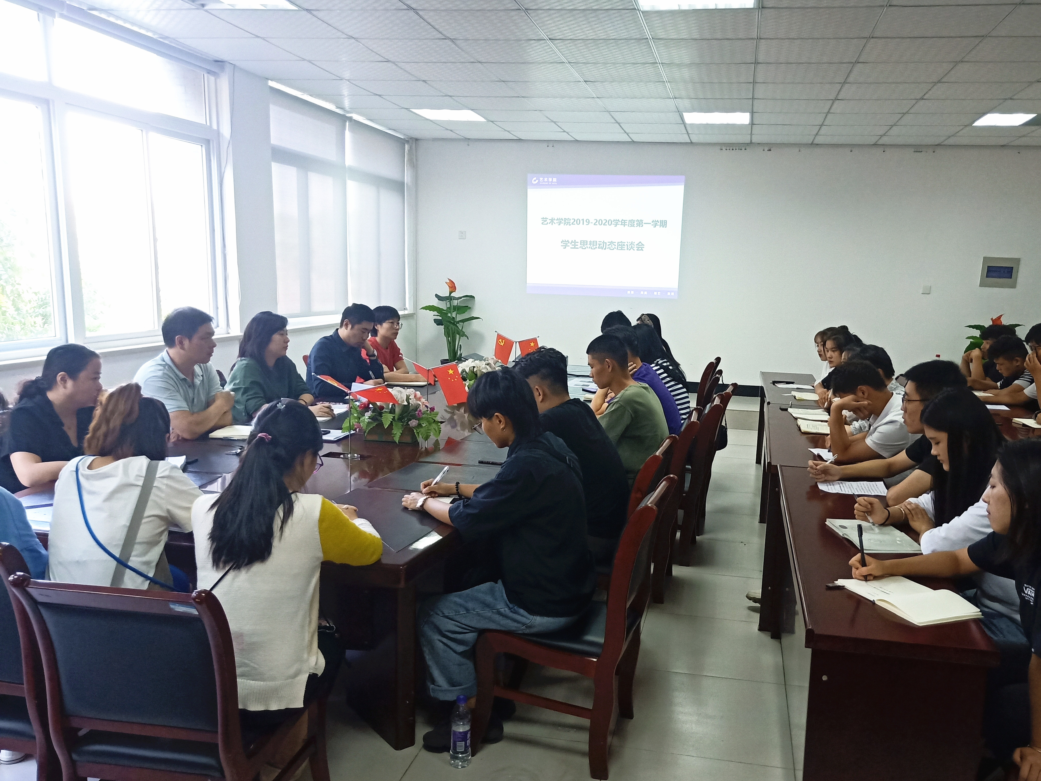 本网讯(通讯员:黄梦)为及时了解艺术学院学生新学期开学后的思想动态,准确掌握、正确研判我院团学工作,维护校园稳定,9月18日艺术学院召开2019-2020学年度第一学期学生思想动态座谈会。出席此次会议的有艺术学院院长助理郑妮、行政兼学管秘书黄梦、教学秘书王静、实验实训主管余新泳、辅导员代表姜宜婷以及艺术学院学生代表。会议由黄梦主持。