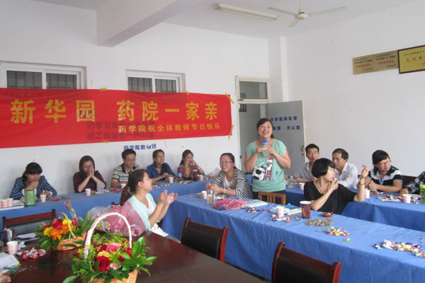 9月10日下午,药学院全体老师集聚一堂组织开展了别开生面的座谈会,庆祝自己的节日。座谈会上,首先,药学院副院长王飞转达了新华集团及beat365在线体育官网登录入口致全体教职工教师节的慰问信。药学院学生给老师送来鲜花表达对老师的祝福,院长张国升教授还为在场的每一位老师送上一杯热茶祝全体老师节日快乐。