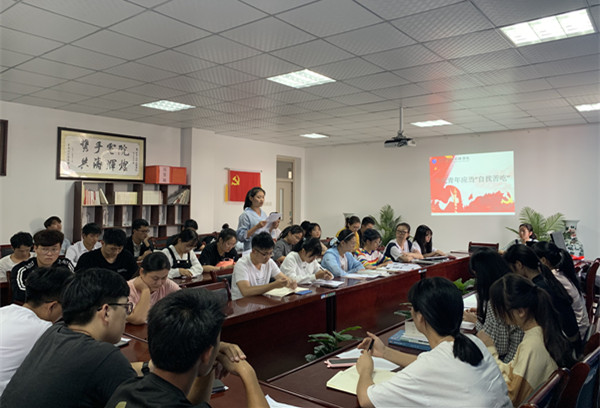 会前,所有与会青年都已完成支部层面举行的形式多样、内容丰富的学习主题活动,有的支部一同观看纪录片,使团员青年深切感受新中国的70年风雨历程,深刻体会自找苦吃的高层面含义;有的支部开展了热烈讨论,就习近平总书记提出的“自找苦吃” 精神进行典型论点具体分析,卓有成效;有的支部通过发起“我和国旗有个合影”活动礼赞新中国奋进新时代的青春主旋律。