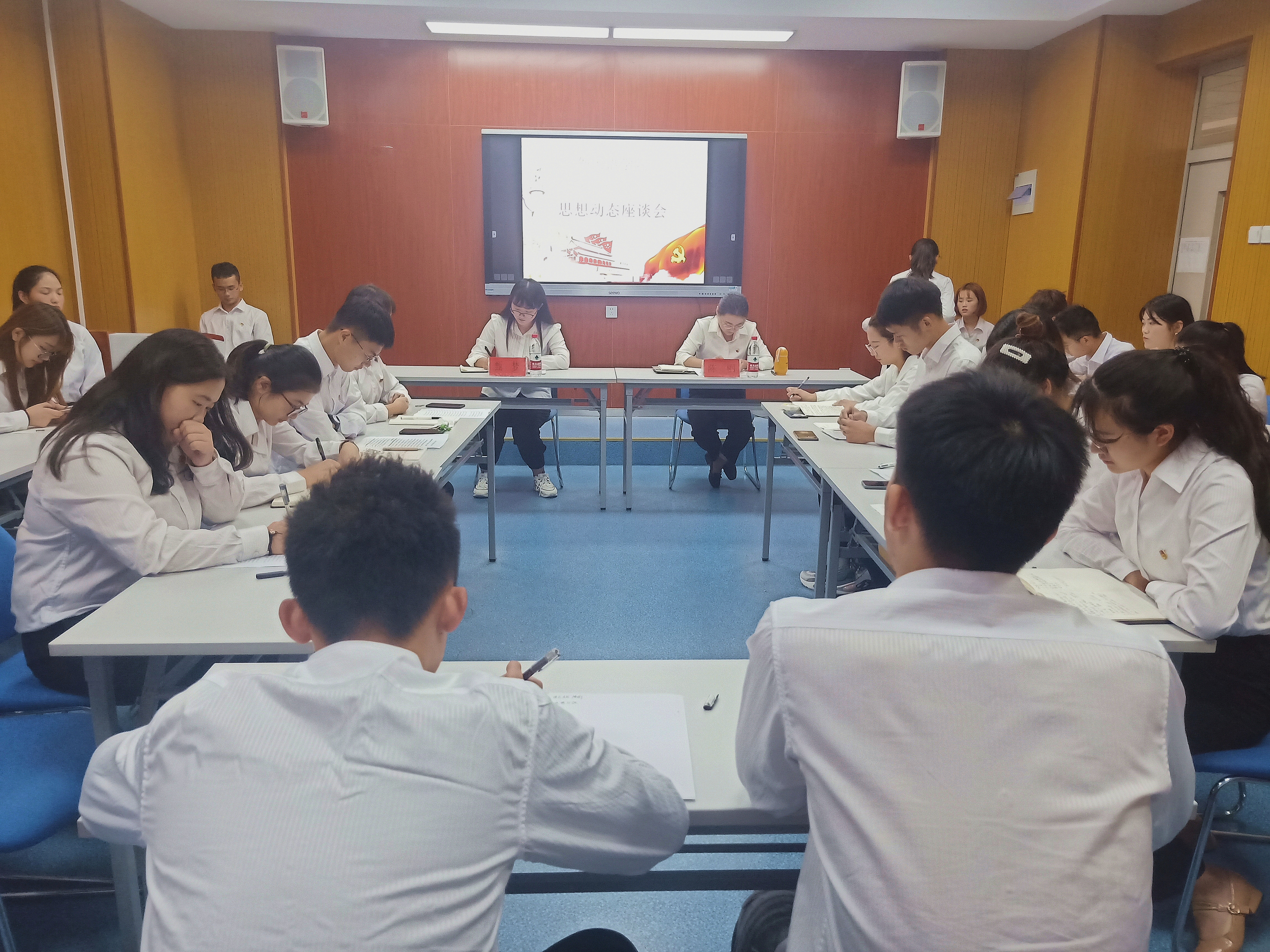 在座谈会中,团总支副书记司甄梦就外国语学院近期团学工作重点进行了布置,她强调各团支部书记要重视每月的团日活动,并且要带领班级同学积极学习青年大学习。同时,强调各班团支部书记要积极参与后期的团支书培训活动。