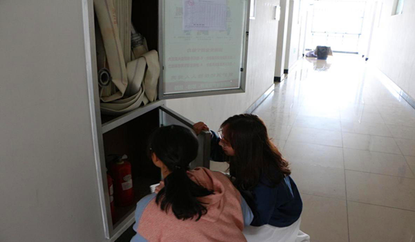财会与金融学院组织学生对院内所有消防器材进行一一检查,确保学院消防器材能够正常使用,不留下任何消防安全隐患,为财会与金融学院创造一个安全、稳定的消防环境。
