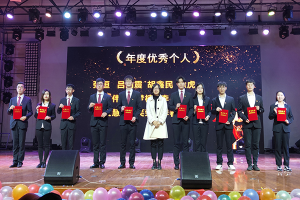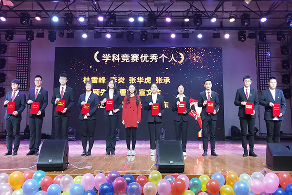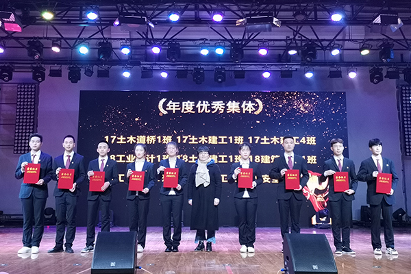 第三篇章:年度典型好榜样。土木与环境工程学院学生积极参与学院各项工作,做出突出贡献。由魏高莉为年度优秀个人颁奖,刘伟为年度优秀示范寝室颁奖,谢汝强为年度优秀学生部门颁奖,朱诵贵为年度优秀学生社团颁奖,邵玲为年度优秀集体颁奖。颁奖间隙穿插着学生准备的节目,2018级土木建工1班开场表演《望江西路的日子》,助理团诗朗诵《行进的中国》。2018级建筑设计1班、2019级工程管理1班、2019级土木工程1班歌曲串烧《重返17岁》,2018级工业设计1班合唱《记念》,最后在2017级土木建工4班合唱《我们都是追梦人》的歌声中完美落幕。