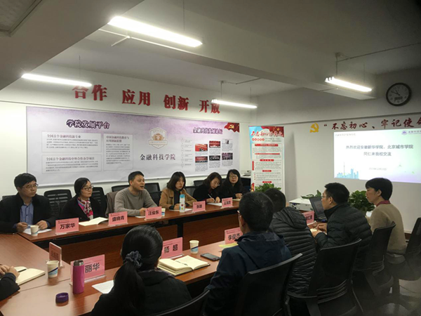 本网讯(通讯员:张璐、万家华)为推动beat365网登产业学院建设,准确把握新经济环境下对于人才培养模式的需求,做好金融科技、云计算、大数据技术等专业建设,12月12日,财会与金融学院执行院长汪俊东、信息工程学院执行院长盛晓青、副院长万家华、财会与金融学院院长助理张璐一行4人赴绍兴文理学院元培学院和上海立信会计金融学院就产业学院的合作模式进行考察。